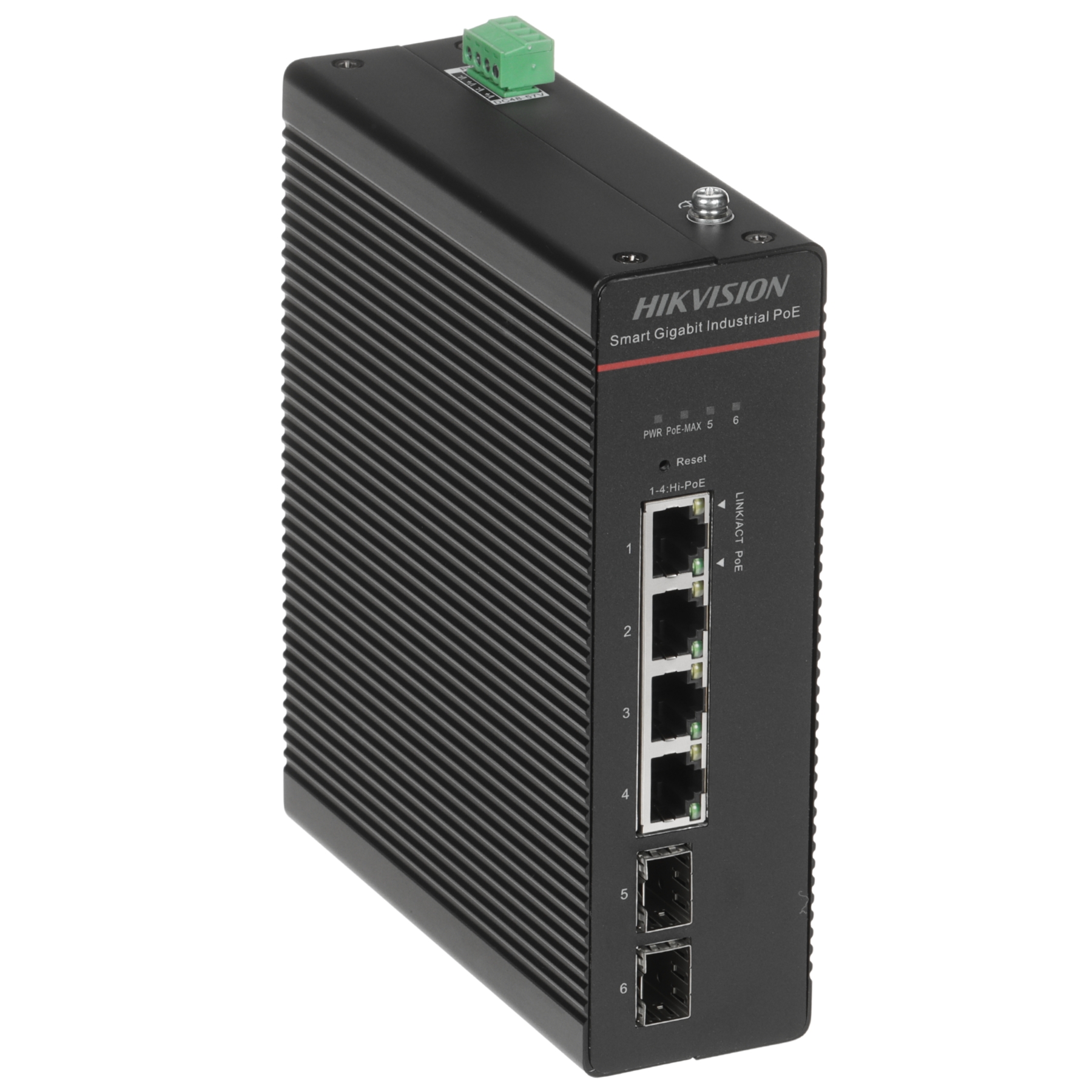 LAN ports: 4 x RJ45 ( 4 x PoE (802.3bt) ), 2 x port SFP ; Transmission speed: 10 / 100 / 1000 Mbps - 4 LAN & PoE ports, 1000 Mbps - 2 SFP ports - Uplink ; Maximal total power: 300 W ; Management; Main features: Mounting on DIN rail ;