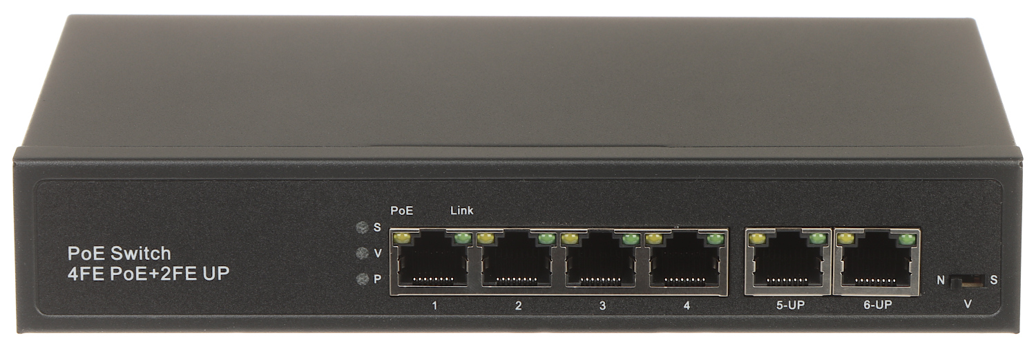 Transmission speed: 10 / 100 Mbps : 2 x LAN port - Uplink + 4 x LAN & PoE port