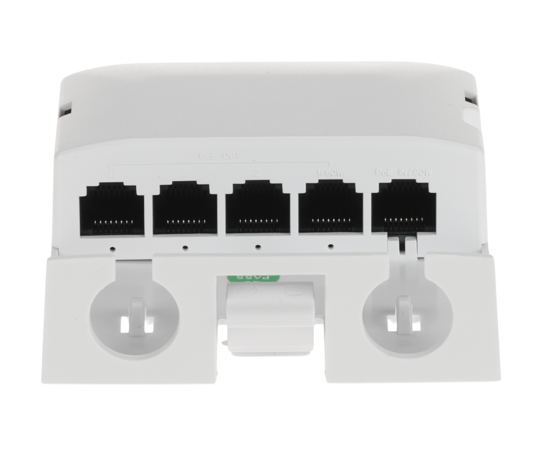 LAN ports: 3 x RJ45 10/100 Base-T + PoE (802.3af/at), 1 x RJ45 10/100 Base-T - Uplink + power input ; Transmission speed: 10 / 100 Mbps : 4 RJ-45 ports + PoE OUT, 10 / 100 Mbps : 1 RJ45 (Uplink) port + PoE IN ;