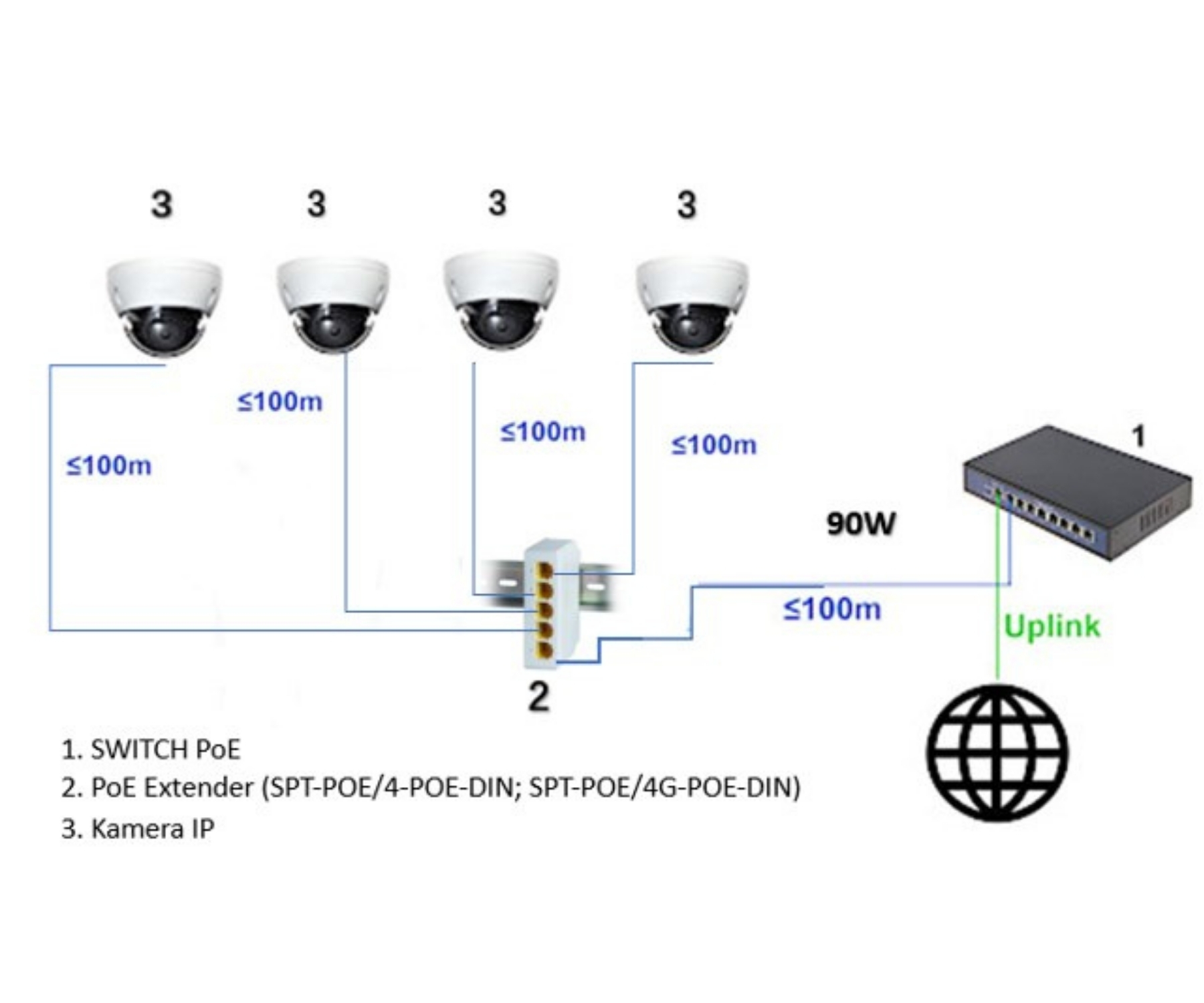 • 10 / 100 / 1000 Mbps : 1 RJ45 (Uplink) port + PoE IN