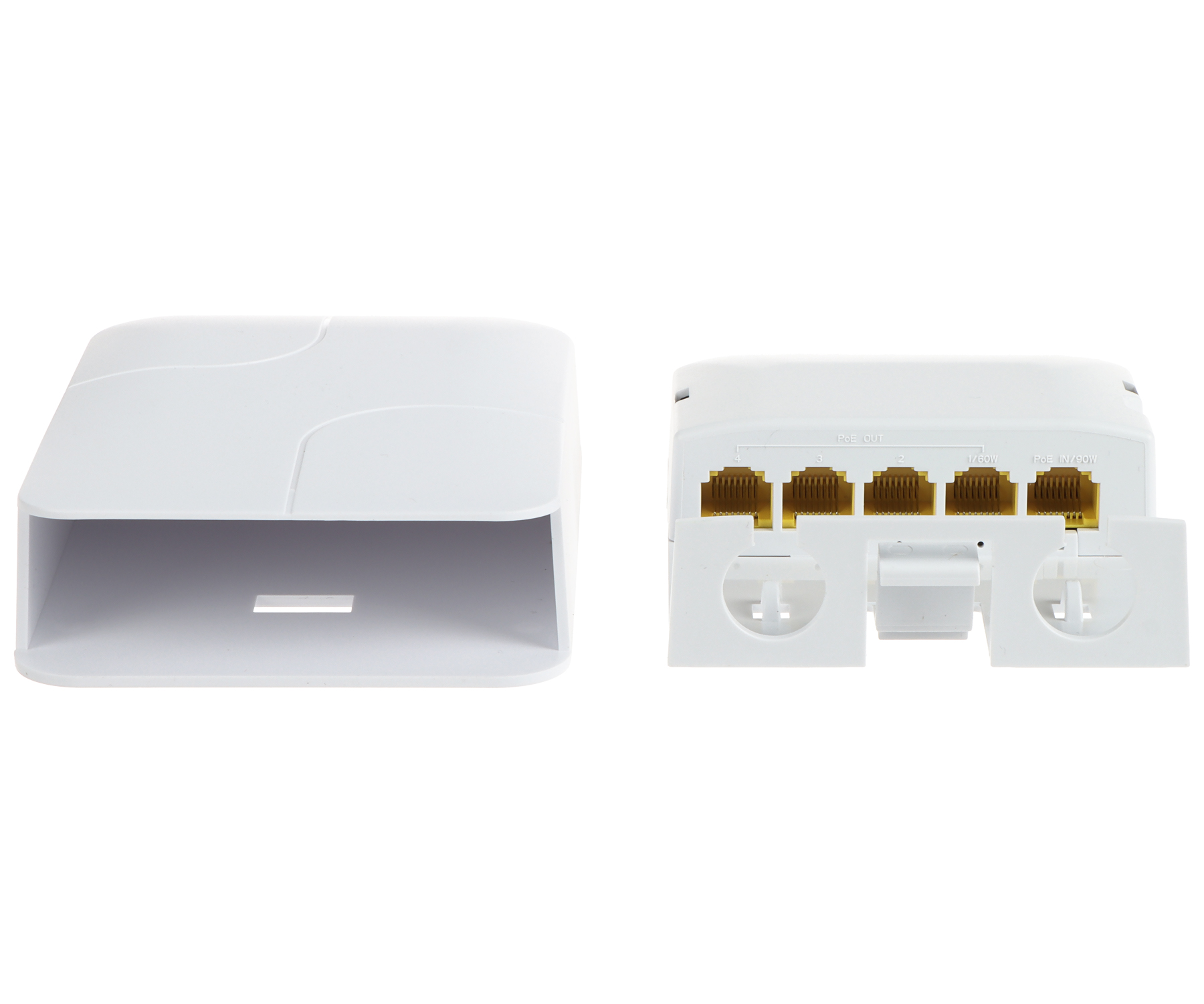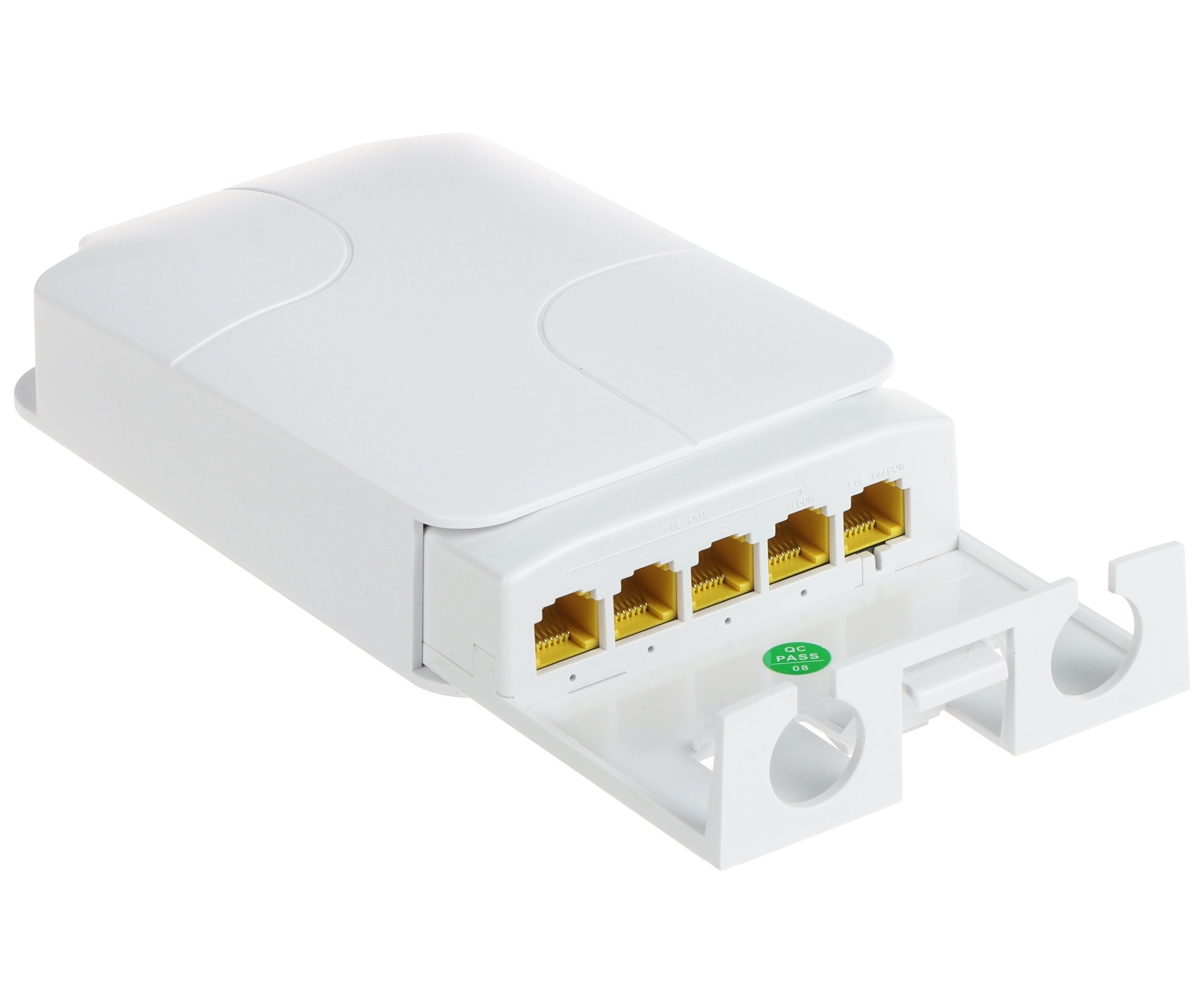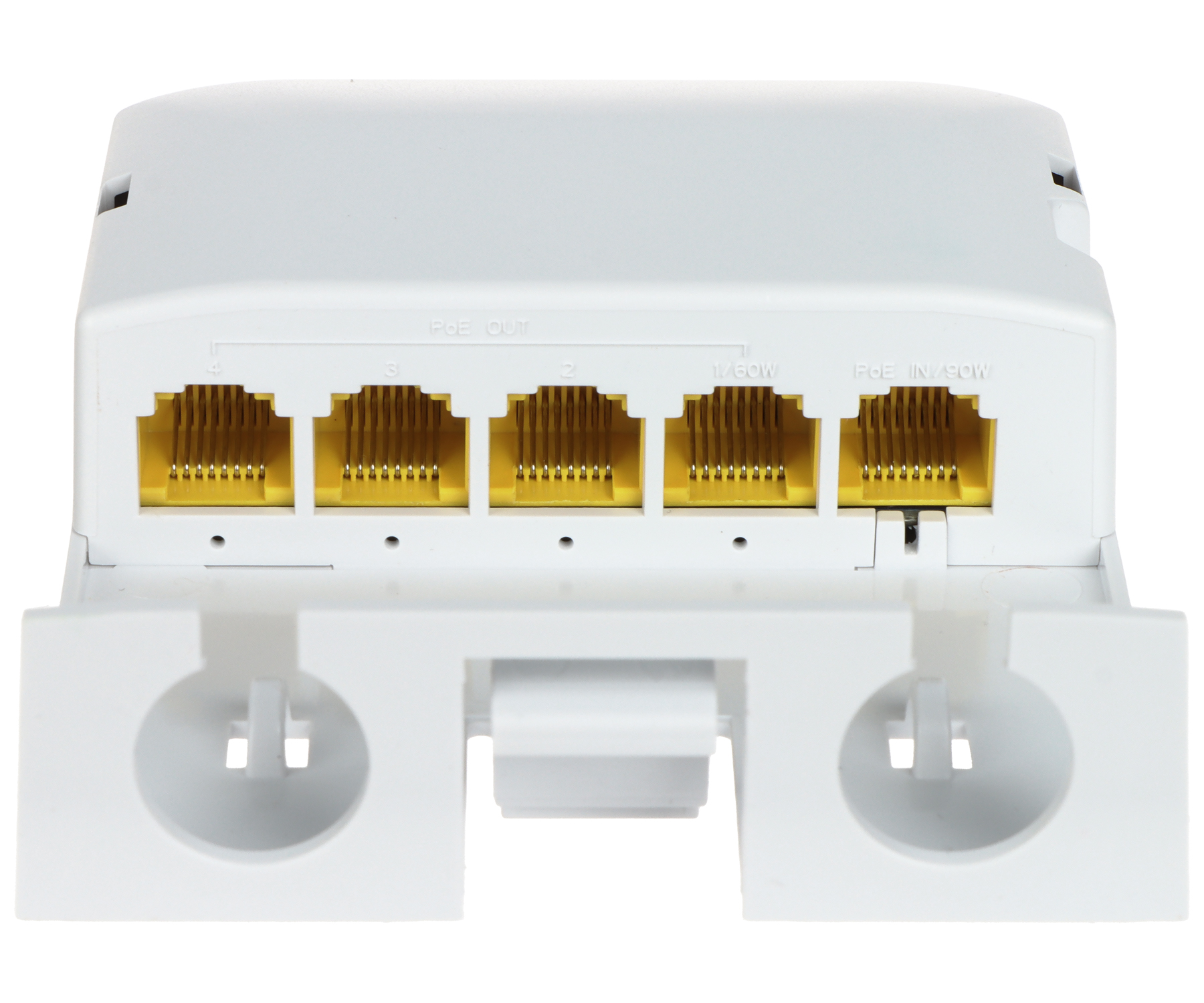 LAN ports: 3 x RJ45 10/100/1000 Base-T + PoE (802.3af/at), 1 x RJ45 10/100/1000 Base-T + PoE (802.3af/at/bt), 1 x RJ45 10/100/1000 Base-T - Uplink + power input : Hi-PoE (802.3af/at/bt) ; Transmission speed: 10 / 100 / 1000 Mbps : 4 RJ-45 ports + PoE OUT, 10 / 100 / 1000 Mbps : 1 RJ45 (Uplink) port + PoE IN ;