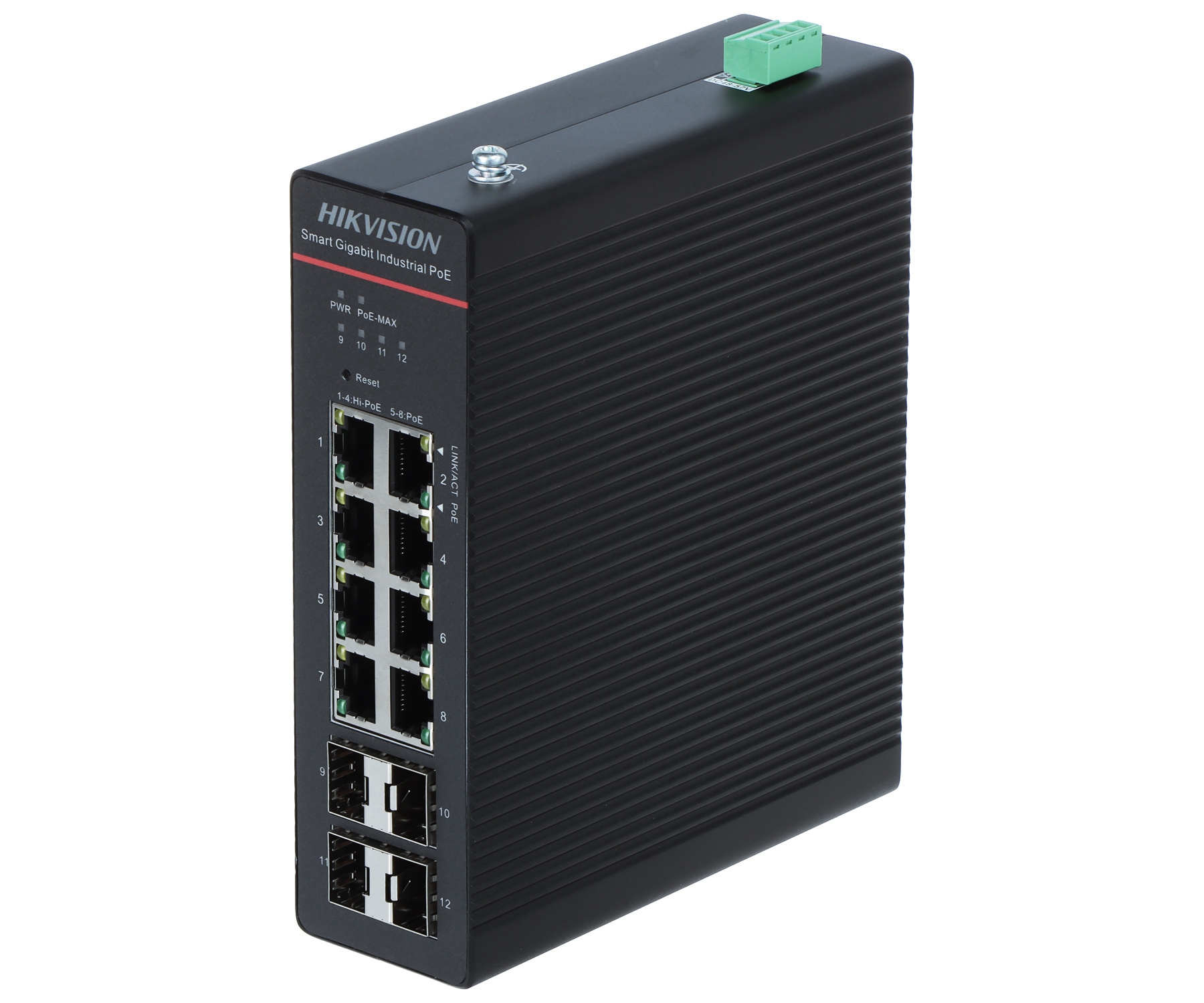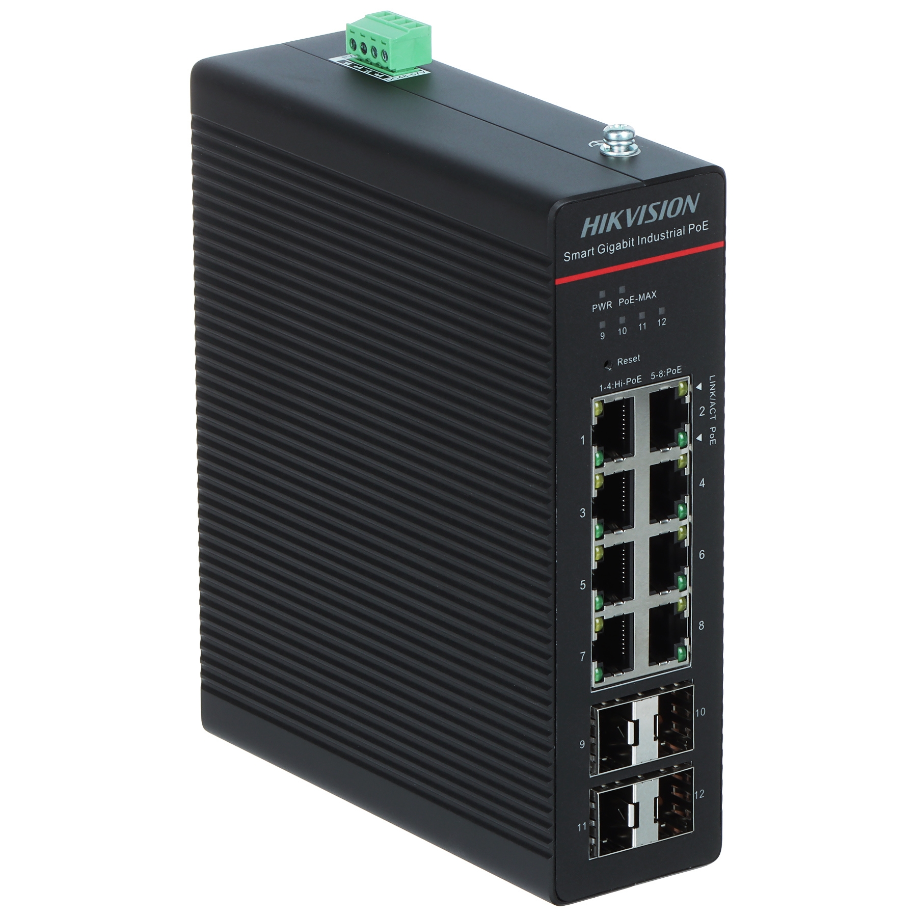 LAN ports: 8 x RJ45 ( 4 x PoE (802.3bt) + 4 x PoE (802.3af/at) ), 4 x port SFP ; Transmission speed: 10 / 100 / 1000 Mbps - 8 LAN & PoE ports, 1000 Mbps - 4 SFP ports - Uplink ; Maximal total power: 300 W ; Main features: Mounting on DIN rail ;