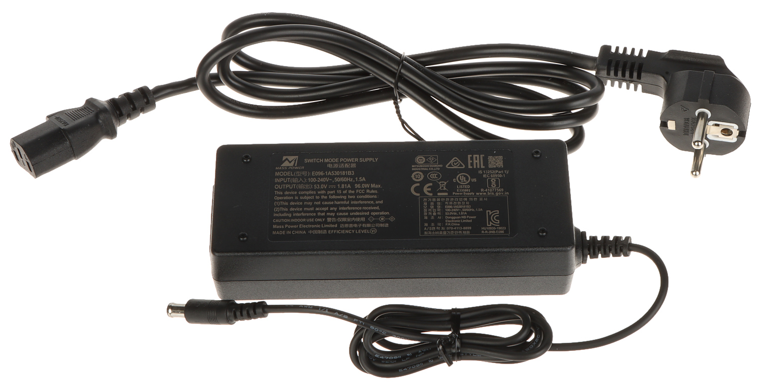 Power supply: | 53 V DC / 1.81 A (power adapter included) |