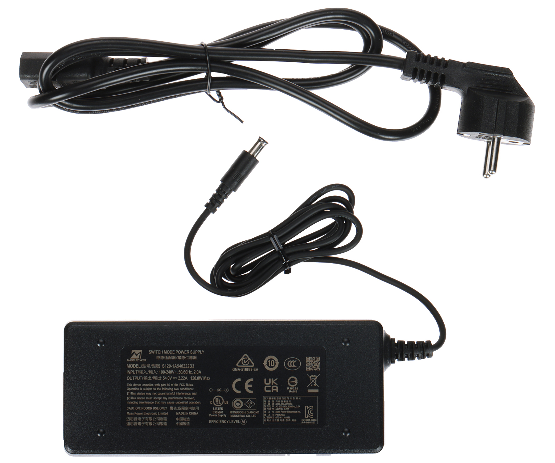 | Power supply: | 54 V DC / 2.22 A (power adapter included) |