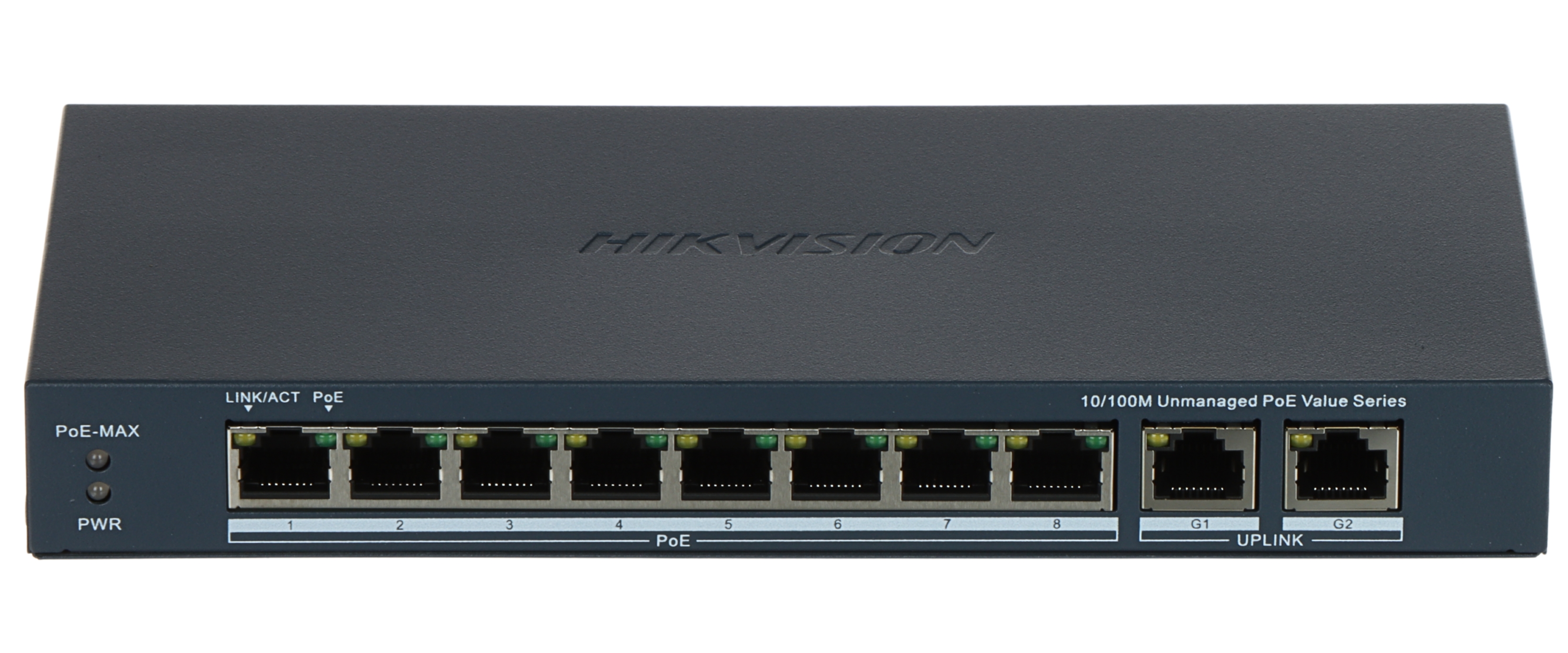 LAN ports: 8 x RJ45 10/100 Base-TX ( 8 x PoE (802.3af/at) ), 2 x RJ45 10/100/1000 Base-TX ; Transmission speed: 10 / 100 Mbps - 8 LAN & PoE ports, 10 / 100 / 1000 Mbps - 2 Uplink ports ; Maximal output power: 30 W / port PoE ; MAC addresses table: 8k ;