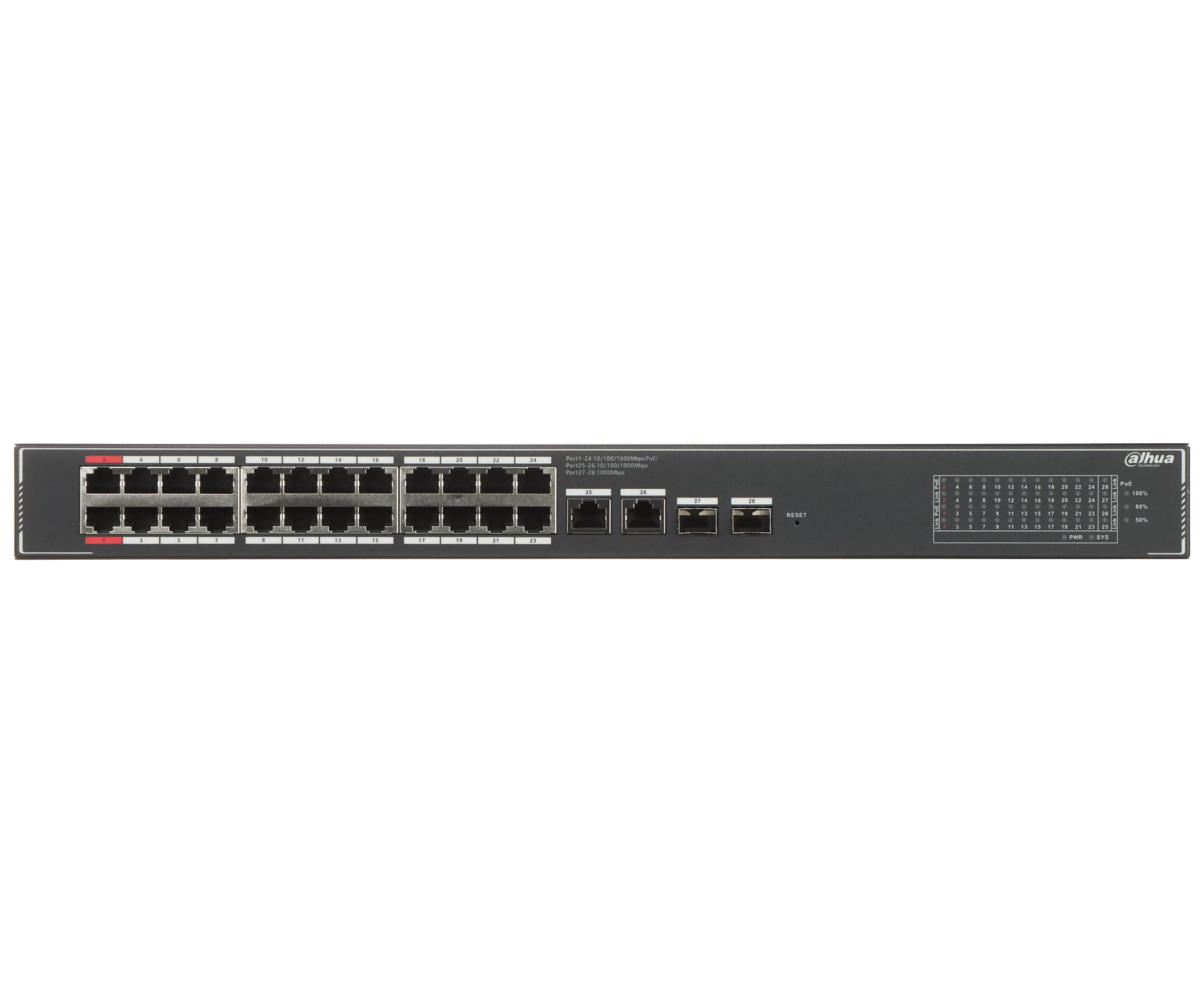 Dahua SG4028LP — профессиональный 24-портовый PoE коммутатор, предназначенный для высокопроизводительных сетевых сред. Этот управляемый коммутатор поддерживает как веб-управление, так и облачное управление через приложение DoLynk Care, что делает его идеальным для современных систем видеонаблюдения и корпоративных сетей. Оснащён расширенными PoE возможностями, интеллектуальным управлением питанием и надёжной защитой от электрических перенапряжений и электростатических разрядов. Устройство монтируется в стойку и выполнено в прочном металлическом корпусе для долговременной надёжности.