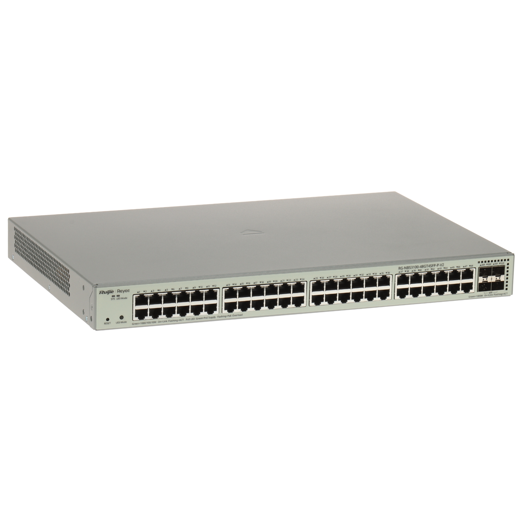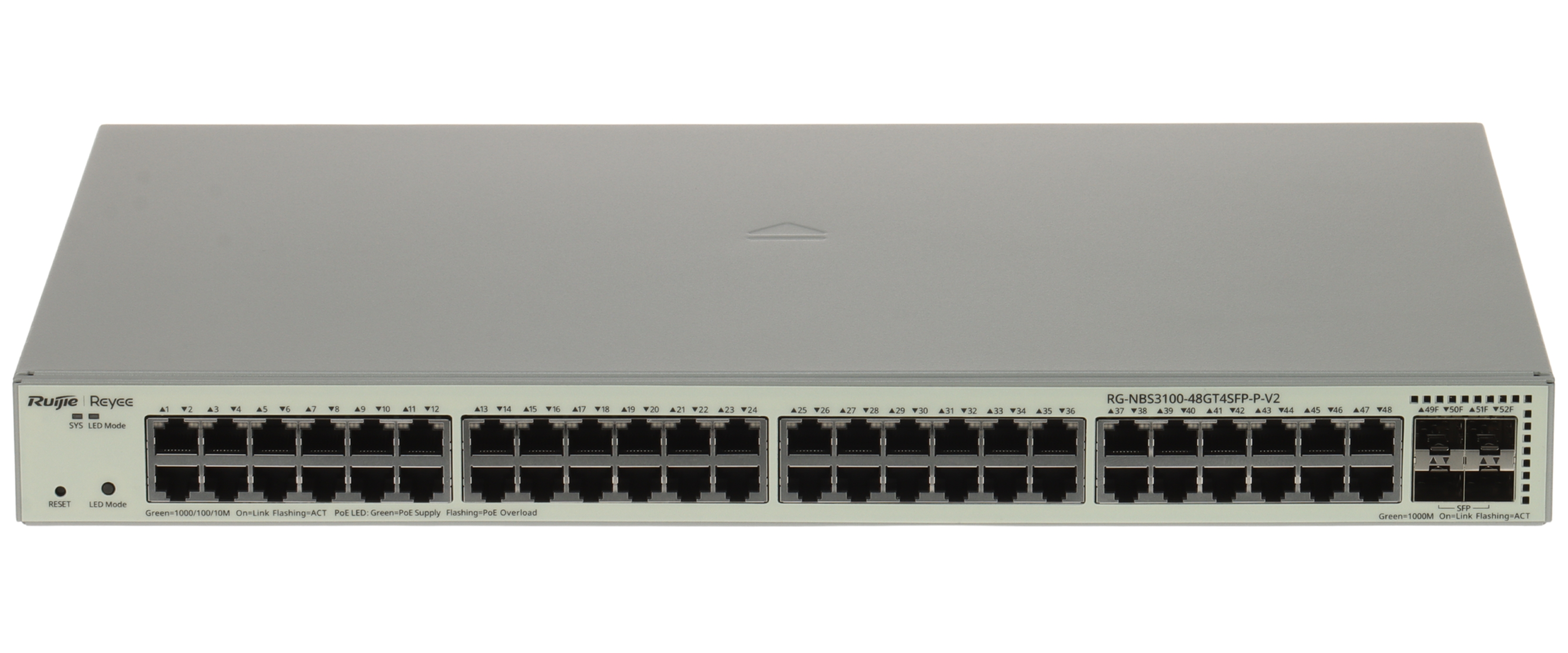 LAN ports: 48 x RJ45 10/100/1000 Base-T ( 48 x PoE (802.3af/at) ), 4 x port SFP - Uplink ; Transmission speed: 10/100/1000 Mbps - 48 x Gigabit Ethernet ; Forwarding rate: 77.38 Mpps ;