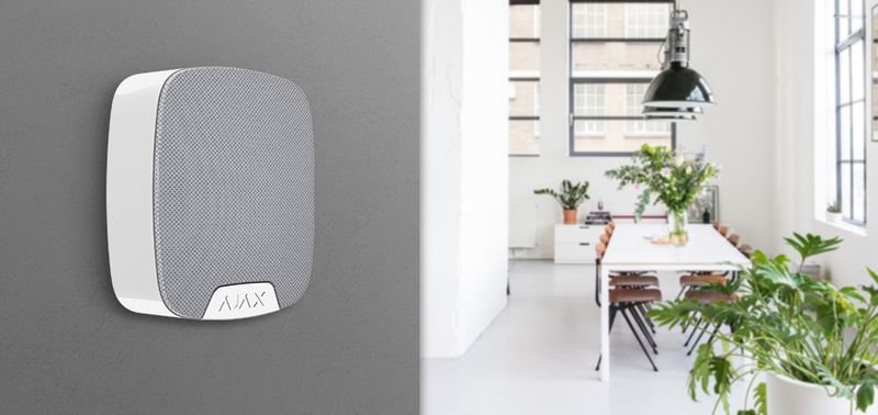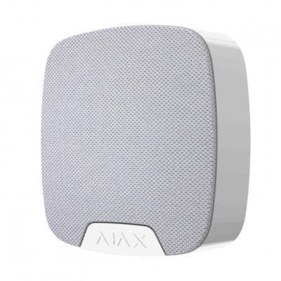 Беспроводная домашняя сирена. Звуковая сигнализация с настраиваемым уровнем звука от 81 до 105 дБ и разъемом для подключения внешнего светодиода. На открытом пространстве держит связь с Ajax Hub на расстоянии до 2000 метров.