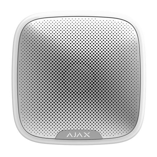 StreetSiren — беспроводная уличная сирена с мощностью до 113 дБ. - Оснащена яркими светодиодами, может работать от внешнего блока питания или до 5 лет от предустановленных батарей. - Устанавливается за пределами помещения, чтобы поднять тревогу на всю округу.