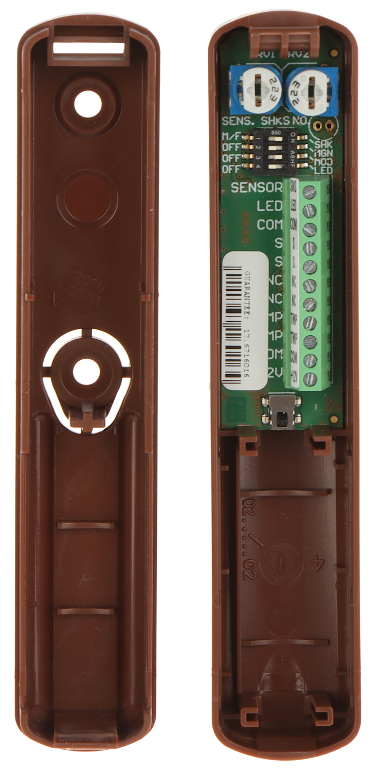 Detection: Opening the door or window, Vibrations, Water ; Alarm signaling: LED indicator, Signal to control panel ; Color: Brown ;