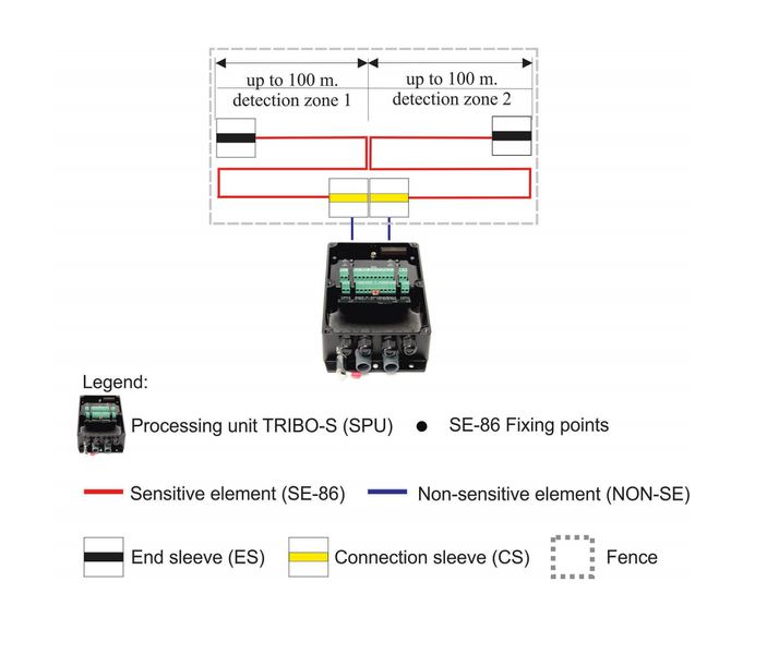 The system is used on sites with irregular perimeter shape, i.e. when it is notreasonable from the economic point of view to use microwave sensors or it is impossible to provide the exclusion zone for microwave sensors. The sites include industrial facilities, airports, sites offorce structure, power plants, private premises, etc.