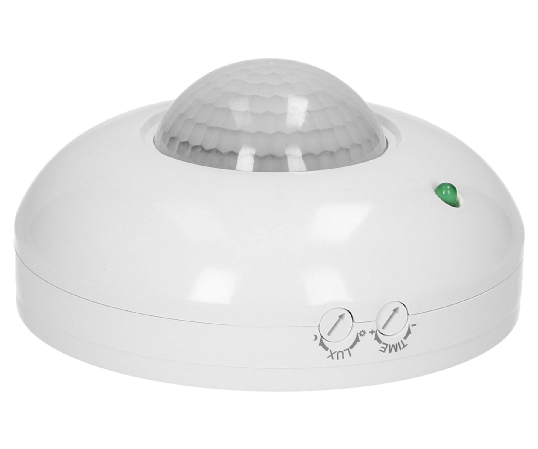 Passive Infra Red detector to ceiling mount; The detector is intended for automatic control of switching on of the lighting outside a building (or other electrical devices) after detection of motion nearby its installation site; Sensor type: Passive Infra Red (PIR) ; Detection angle: 360 ° ; Range: max. 6 m ; Application: For indoor use ; Color: White ;
