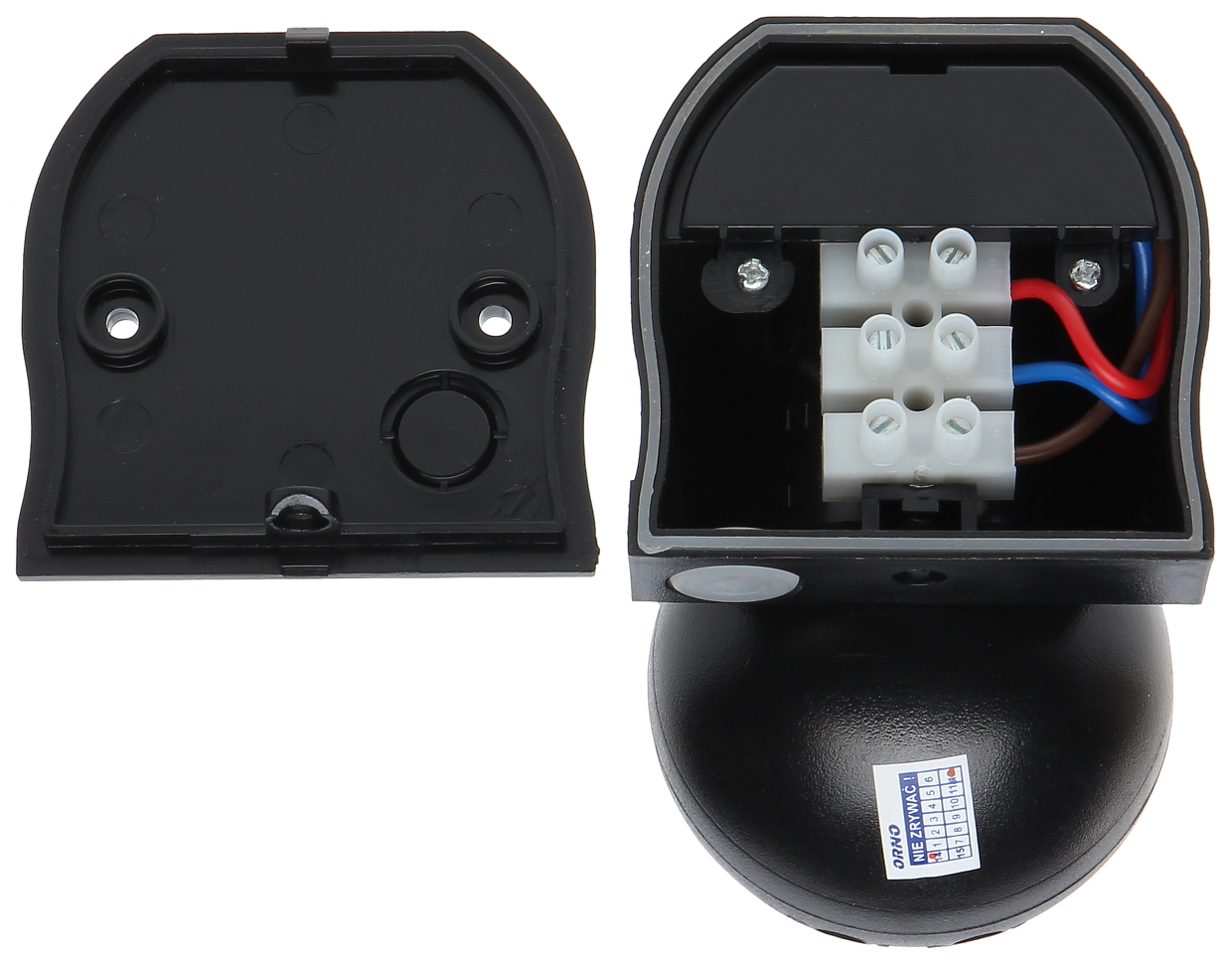 The detector is intended for automatic control of switching on of the lighting outside a building (or other electrical devices) after detection of motion nearby its installation site; Sensor type: Passive Infra Red (PIR) ; Detection angle: 180 ° ; Range: 12 m @ 24 °C ; Application: For outdoor use ; Color: Black ;