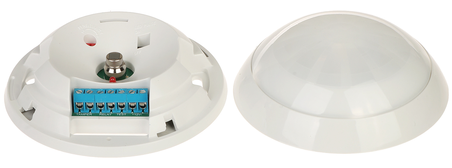 Application: Indoor ; Pyroelectric sensor: quadruple ; Sensor type: Passive Infra Red (PIR) ; Range: Ø 14 m, Ceiling mounting @ 3 m, ; Sensitivity adjustment; Protection class (Grade): ; Main features: TAMPER switch indicating open the cover ;