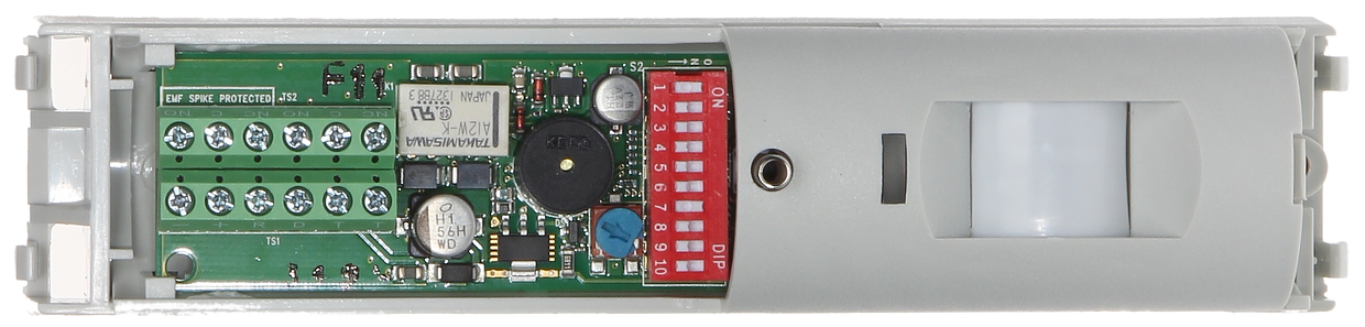 Application: Indoor ; Sensor type: Passive Infra Red (PIR) - vertical curtain ; Range: 4 x 6 m ; Alarm time: 0.5 ... 64 s ;