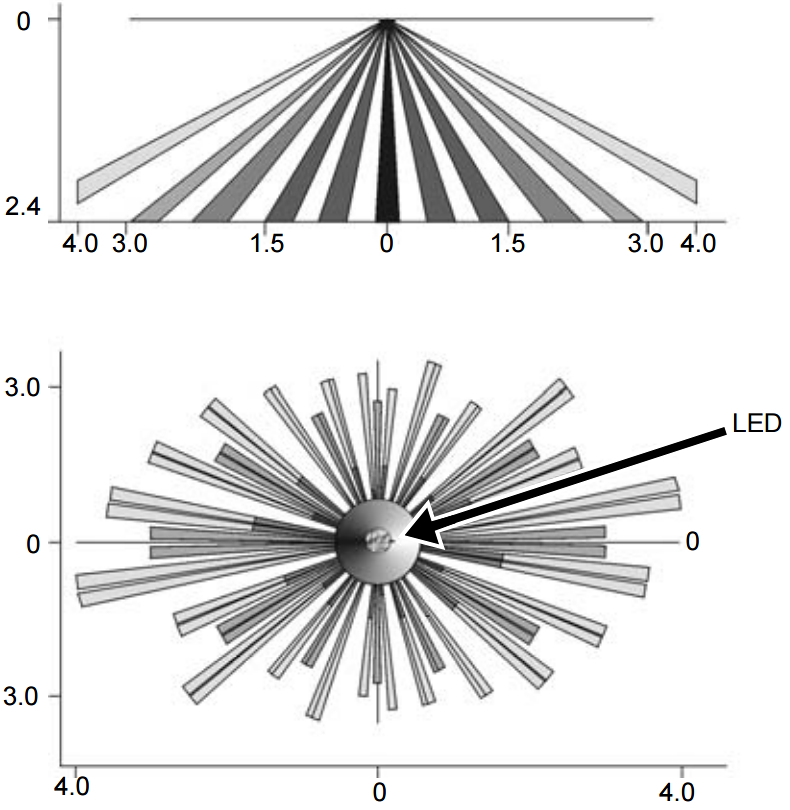 Passive Infra Red detector to ceiling mount; Application: Indoor ; Sensor type: Passive Infra Red (PIR) ; Range: 7 x 6 from a height 2.4 m, 11 x 6 m from a height 3.7 m ; Detection angle: 360 ° ; Color: White ;