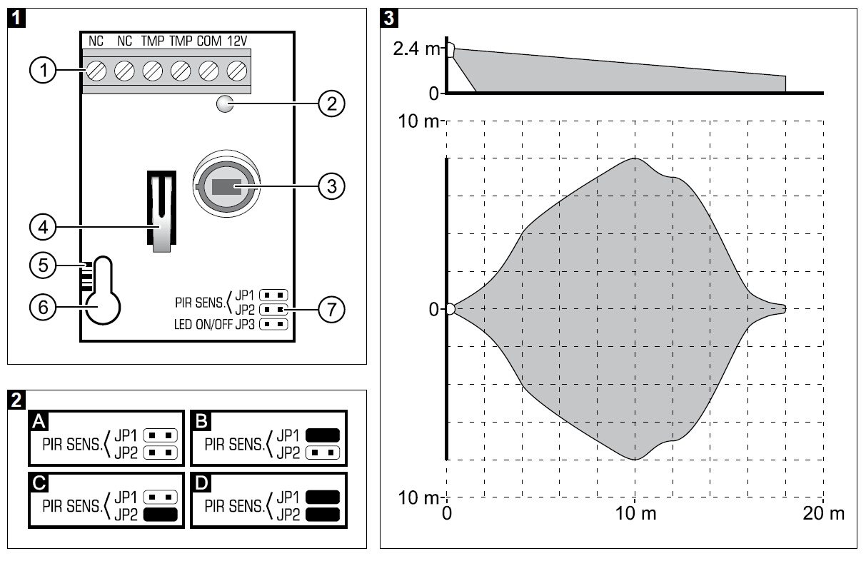 Application: Indoor ; Sensor type: Passive Infra Red (PIR) ; Range: 18 x 16 m ; Pet immunity: ≤ 15 kg ;