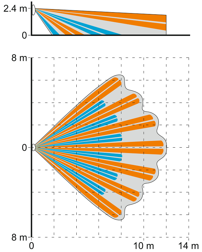 Application: Indoor ; Sensor type: Passive Infra Red (PIR) ; Range: 12 x 13 m, 90 ° ; Pet immunity: ≤ 20 kg ;
