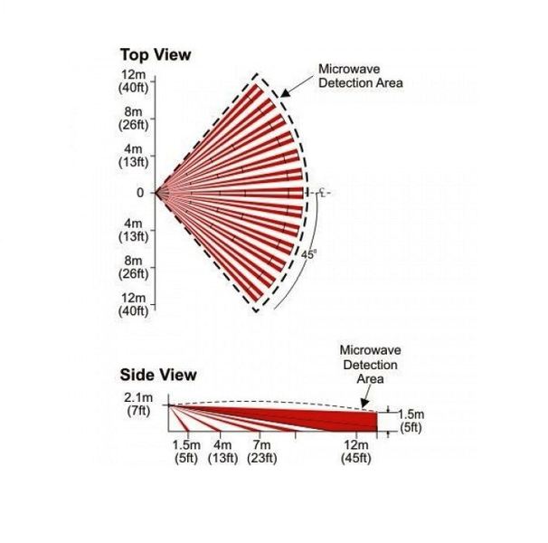 Характеристики: • Цифровая микроволновая часть • 3 светодиода отображает тип движения • При срабатывании ИК-части, датчик ждет сигнал от МВ-части для подтверждения, прежде чем генерировать тревогу • Регулируемое покрытие микроволнами • Область детектирования 14м x 14м; угол обзора 90° • Запатентованная система цифрового детектирования • Запатентованный алгоритм автоматического подсчета импульсов • Алгоритм экранирования с настраиваемой чувствительностью • Технология Single/Dual Edge Processing • Автоматическая температурная компенсация • Металлический экран, повышающий помехозащищенность • Твердотельное реле • Датчик вскрытия корпуса