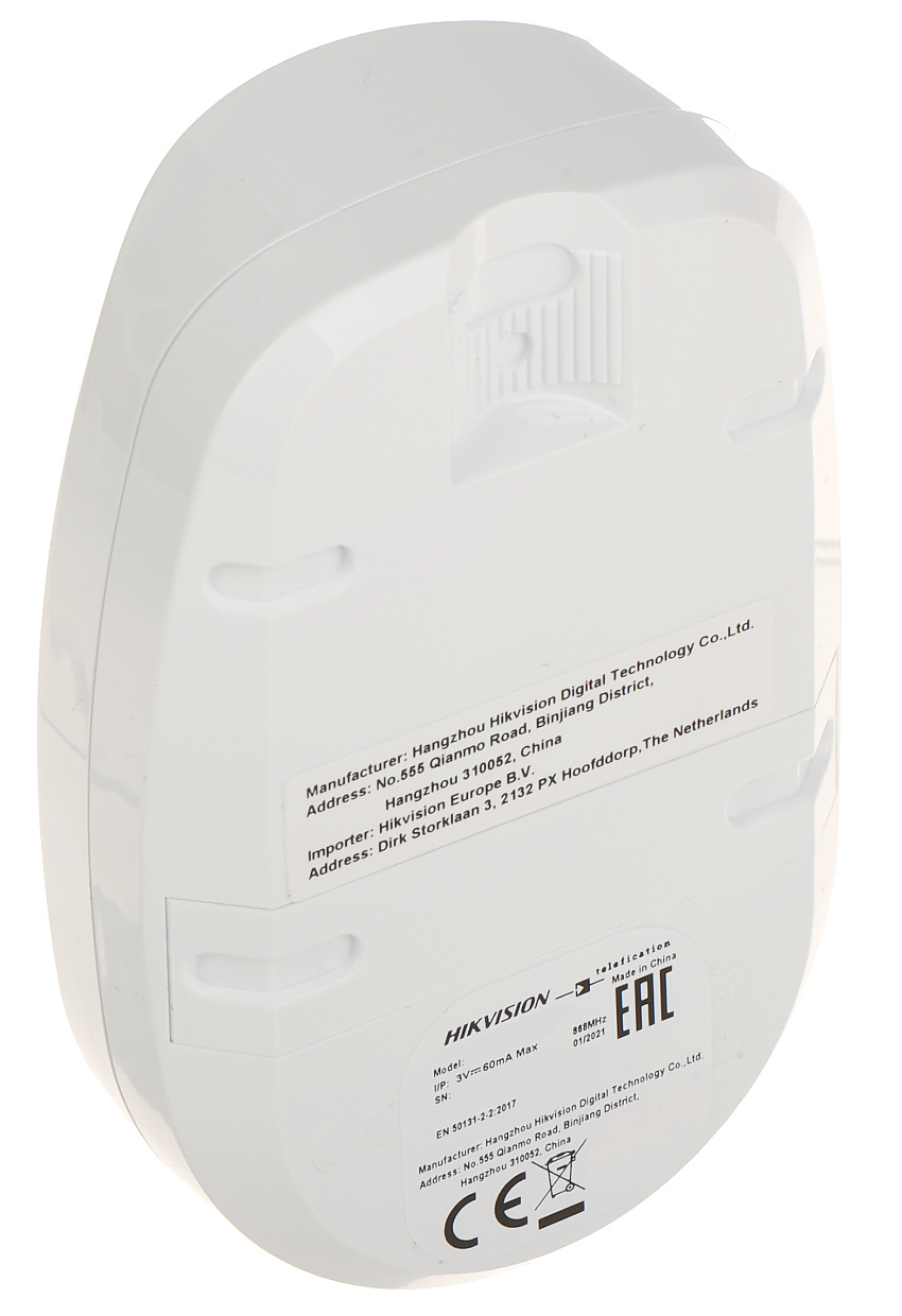 Support: Wireless alarm systems HIKVISION AX PRO ; Frequency band: 868 MHz ; Radio communication range (at open area): max. 1600 m ; PIR detection range: 12 m / 85.9 ° ; Battery working time (in energy saving mode): ~ 5 years ; Pet immunity: ≤ 30 kg ;