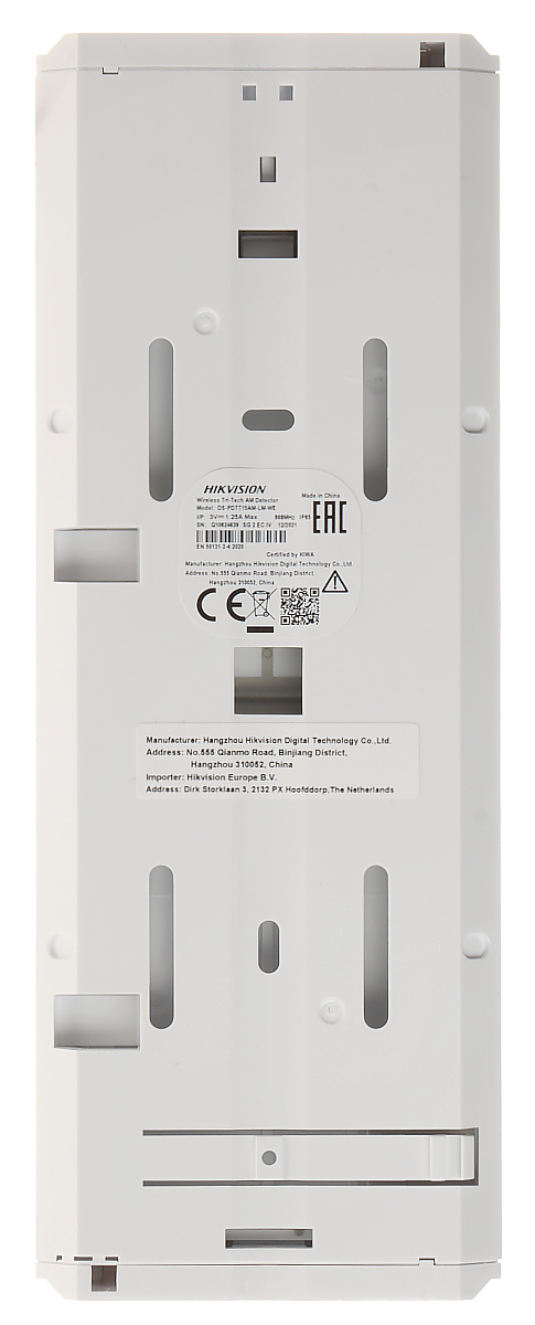 Support: Wireless alarm systems HIKVISION AX PRO ; Frequency band: 868 MHz ; Radio communication range (at open area): max. 1600 m ; PIR detection range: 15 m / 90 ° ... 180 ° ; Battery working time (in energy saving mode): ~ 5 years ; Pet immunity: ≤ 40 kg ; "Index of Protection": IP65 ;
