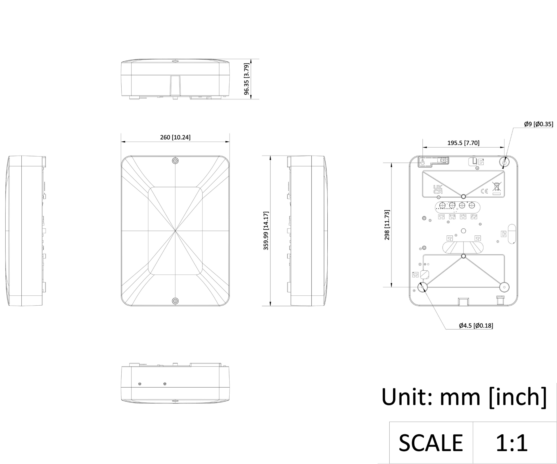 Dimensions: 360.0  x 260.0  x 96.3 mm