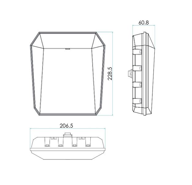 206 mm × 228 mm × 61 mm (8.11" × 8.98" × 2.40")