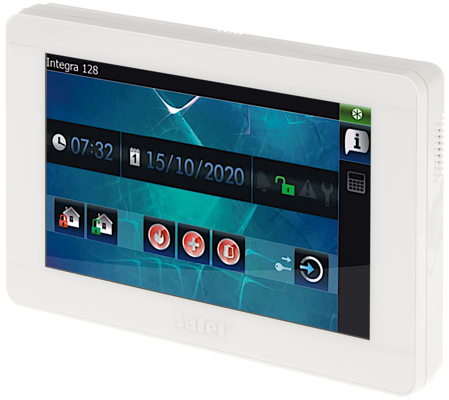 Large, easily readable LCD with backlight displaying detailed information on system state; MAKRO features that activates sequence of actions with a single key; Support: INTEGRA ; Main features: 7 " capacitive touch screen ; Color: White ;
