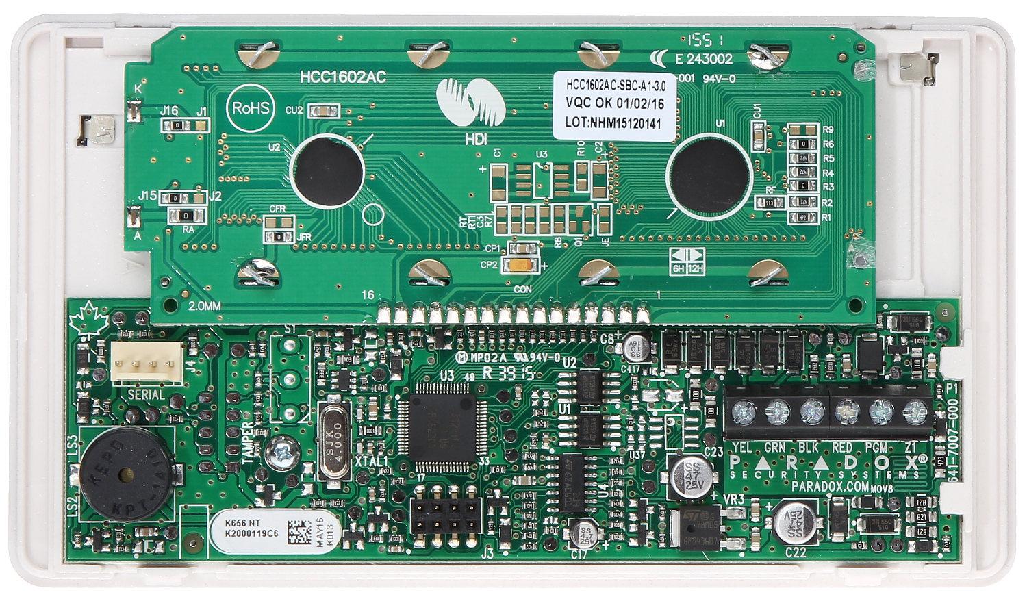The K656-W2W sensoric keypad does not only stand for attractive design, but also for simplification for the daily operation of advanced alarm systems and home automation using the functionalities of the PARADOX Digiplex EVO control units;