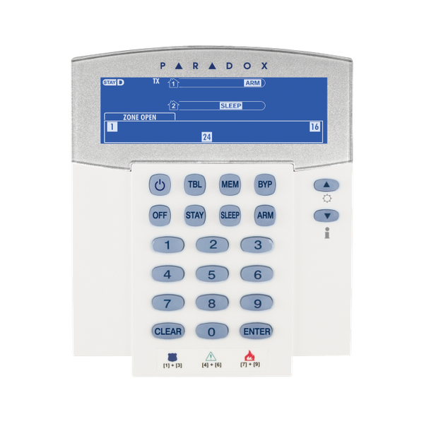 Features: Compatible with MG6250, MG5000/MG5050 V3.22, Spectra SP V3.22 (except SP4000) and RTX3 V1.42 Powered by 2 "AA" batteries, with built-in backup battery (PA6 is optional) A 6Vdc power adaptor (PA6 not included) is not required but can be used as an alternative power source Provides real-time zone and system status, and can be used to program the panel using only battery power (2 "AA" alkaline batteries) Goes into sleep mode after 20 seconds to save battery life, but remains synchronized with the panel in order to automatically wake up upon an entry delay or an alarm to provide full functionality (system status, zone display and buzzer) Fixed message display that guides you in the operation of the system Displays the status of 32 zones in 2 partitions Displays Arm, Sleep, Stay and Disarmed status for each partition Displays StayD, troubles, bypassed zones and alarm memory In-field firmware upgrade via 307USB and WinLoad Adjustable backlight Built-in transceiver (433MHz or 868MHz) Wireless range in a typical residential environment: 40m (130ft) 8 one-touch action buttons 3 keypad-activated panic alarms The 6Vdc power adaptor is not required but can be used as an alternative power source (PA6 not included)