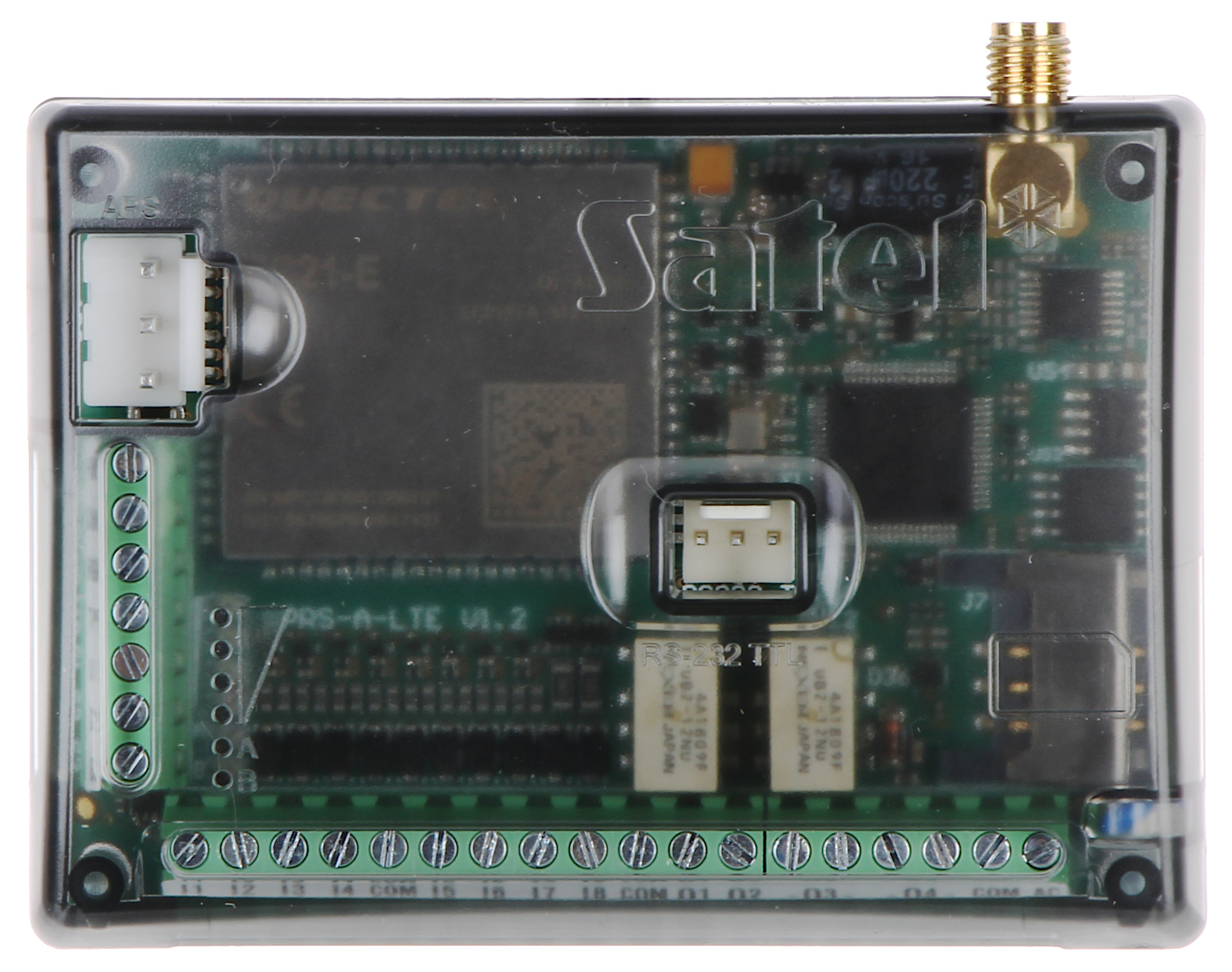 The GPRS-A-LTE module informs about change of the inputs status, sending event codes to the monitoring stations based on GPRS transmission or SMS messages; Alarm inputs: 8 pcs ; Telephone numbers to reporting events: ; Event codes sending messages type: CLIP, PUSH, SMS, GPRS, LTE ;