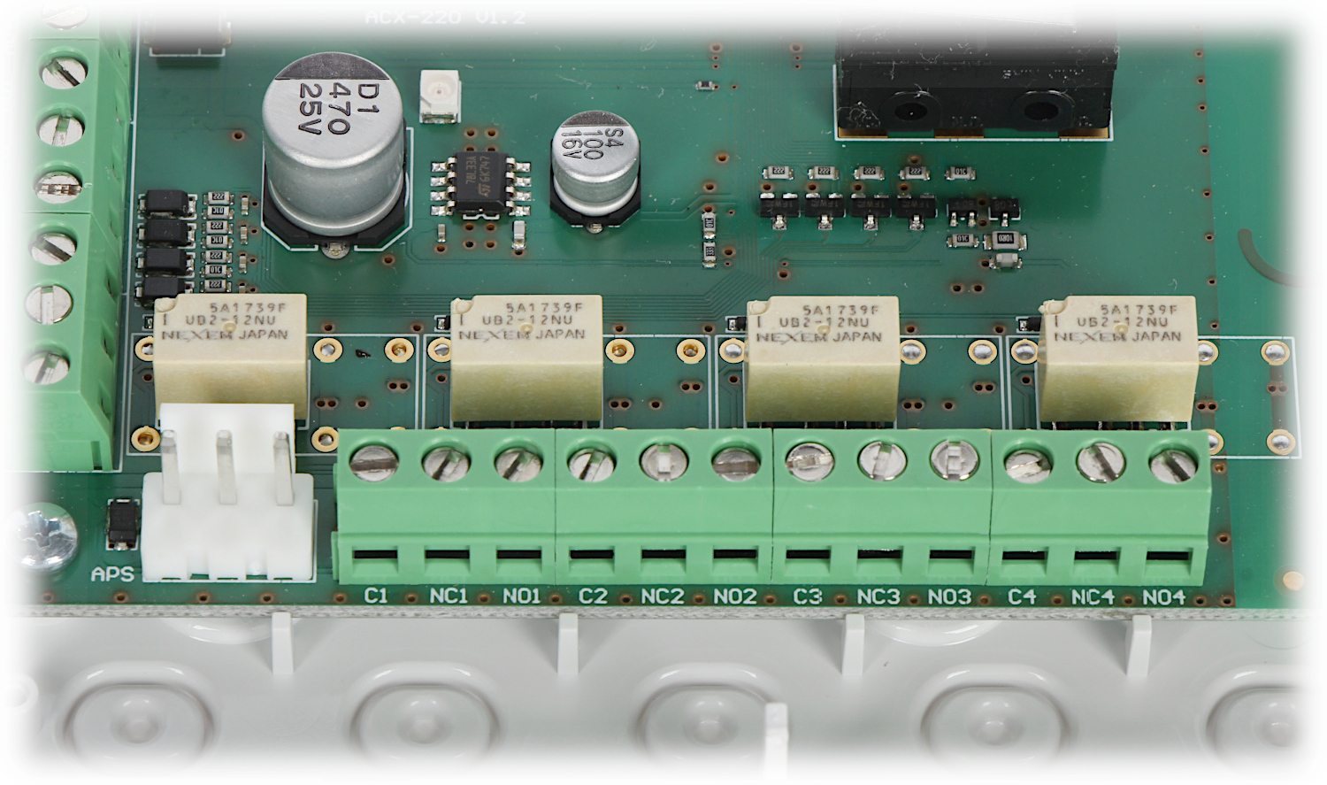 Inputs: 4 pcs NO, NC, EOL, 2EOL/NO, 2EOL/NC ; Outputs: 4 pcs Relay ; Frequency band: 868 ... 868.6 MHz ; Radio communication range (at open area): ≤ 2000 m - ABAX2 @ ACU-220, ≤ 1600 m - ABAX2 @ ACU-280, ≤ 500 m - ABAX ; Tamper output; Power supply: 12 V DC ;