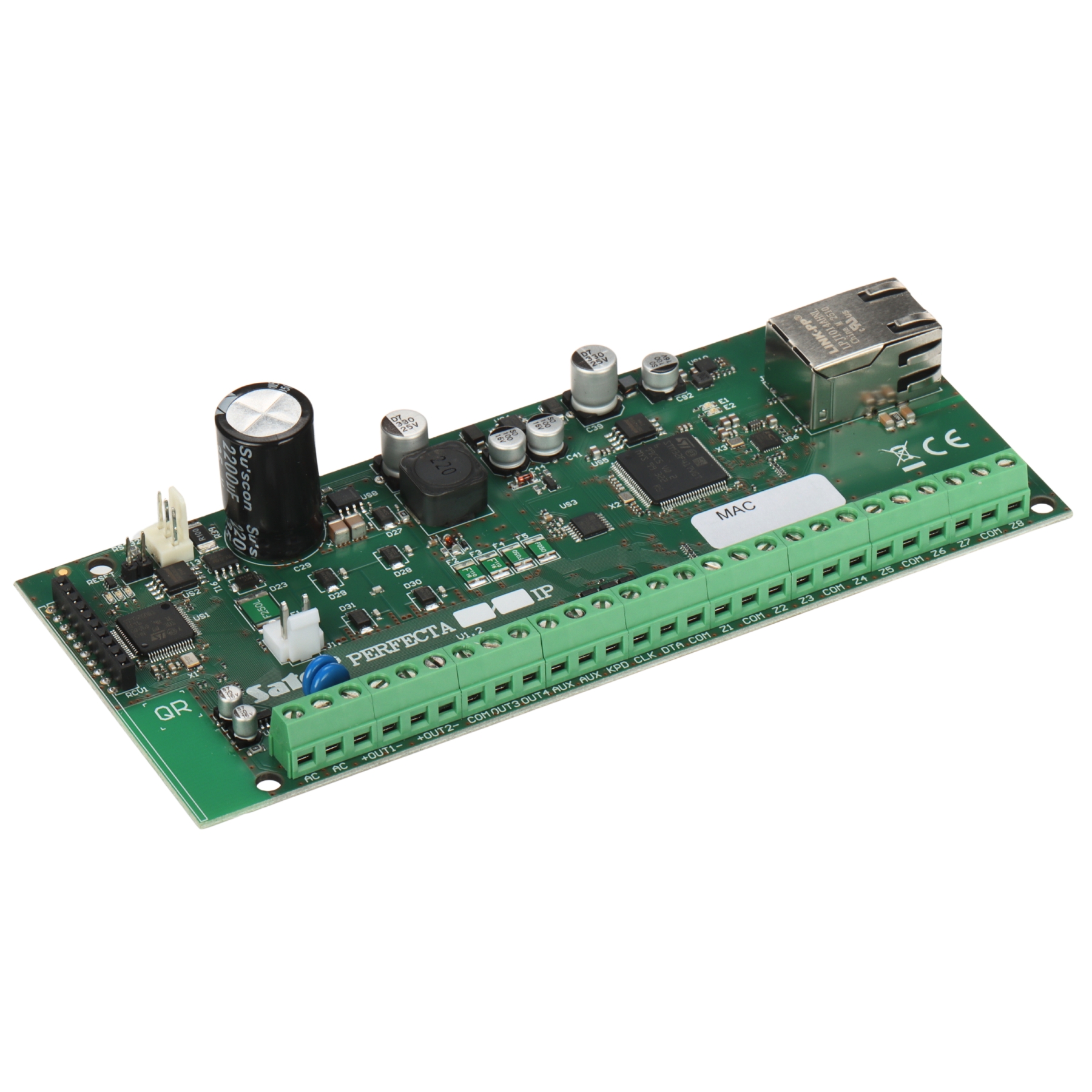 Mainboard inputs: 8 pcs ; Mainboard outputs: 4 pcs ; Maximal number of supported inputs: 64 pcs ; Zones: 4 ; Events memory: 3584 ; Timers: 8 ;