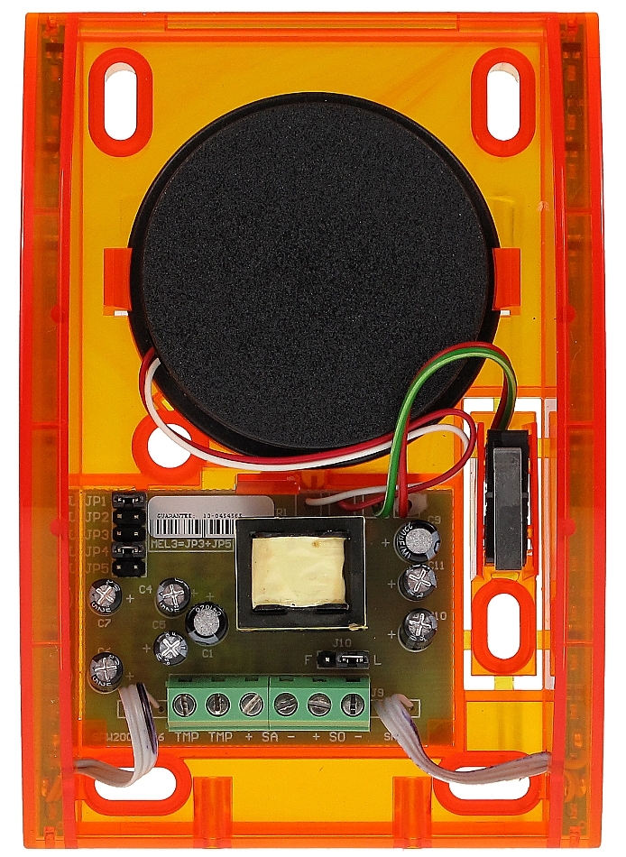 The SPW-220-O small indoor siren with optical and acoustical signaling is designed for operation in the intruder alarm systems;