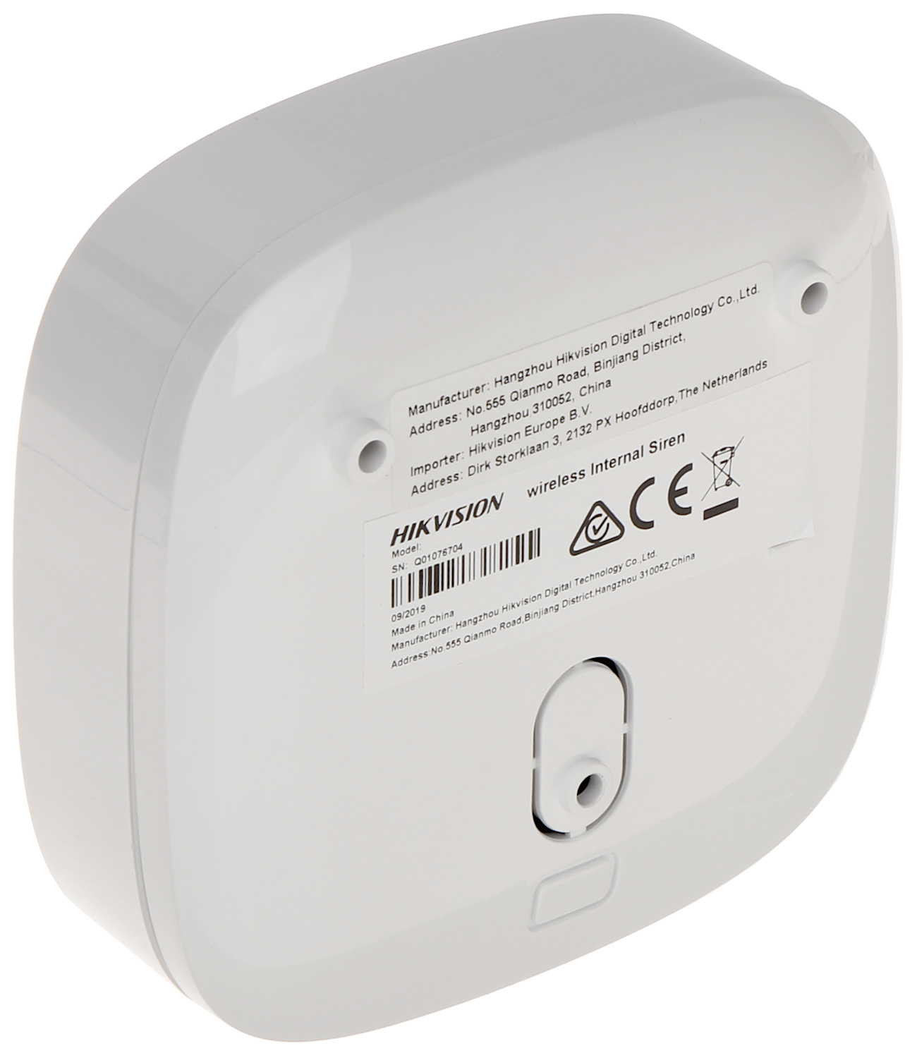 Support: HIKVISION AX-PRO ; Sound pressure level: 90 dB ... 110 dB ; Frequency band: 868 MHz ; Radio communication range (at open area): max. 1600 m ; Color: White ; Power supply: 3 x  Battery 3 V CR123A ; Backup time: ~ 3 years ; Operation temp: -10 °C ... 55 °C ;