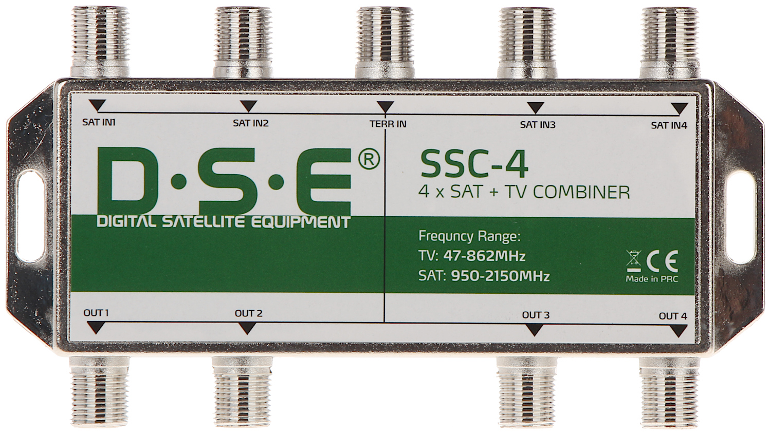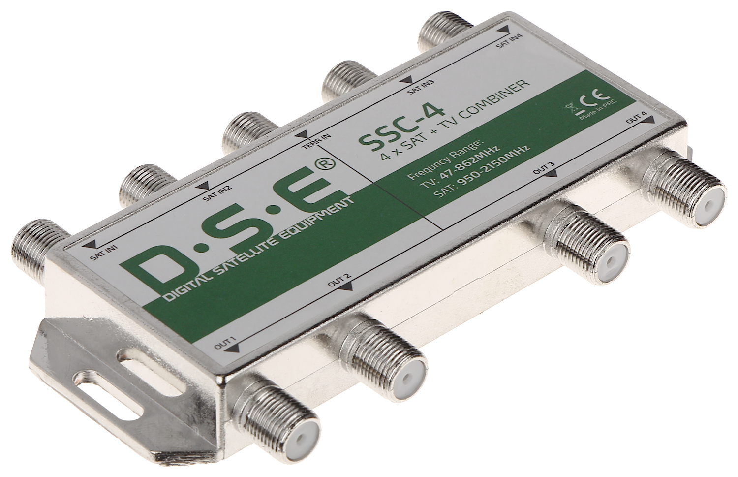 TV and SAT signals multiplexer; It has DC pass for SAT line; Combiner allows to sum up the Quad LNB signal with terrestrial TV signal and send it to four RTV SAT sockets;