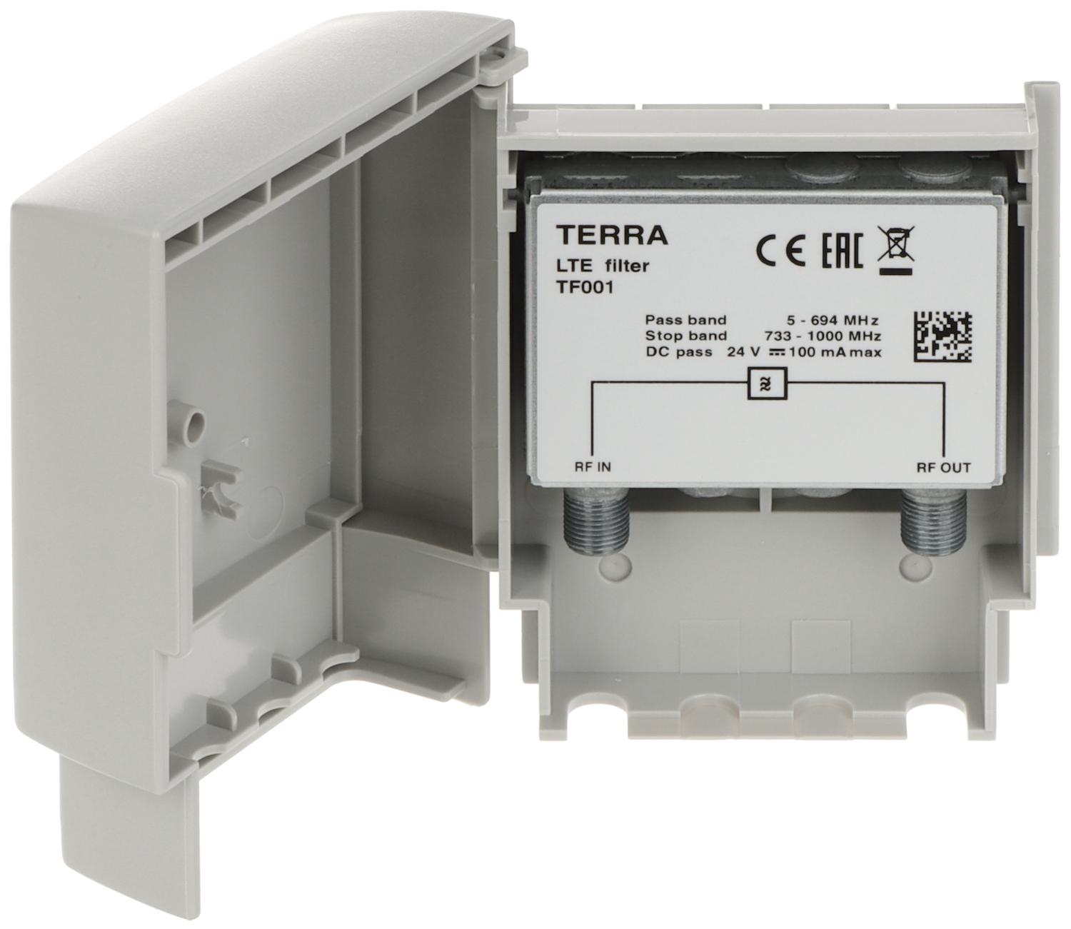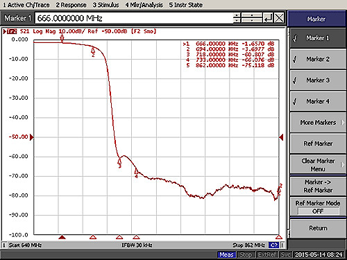 Insertion loss: | < 3 dB @ 5 ... 470 MHz < 3.5 dB @ 694 MHz |
