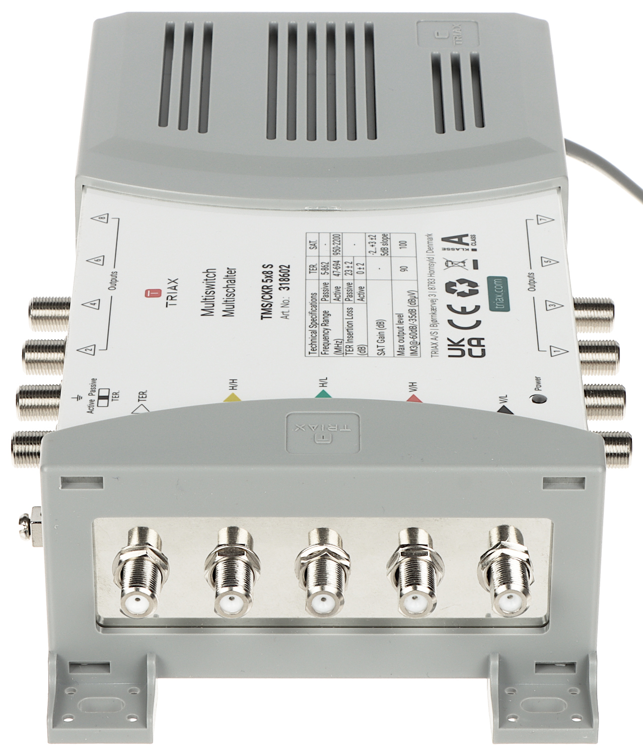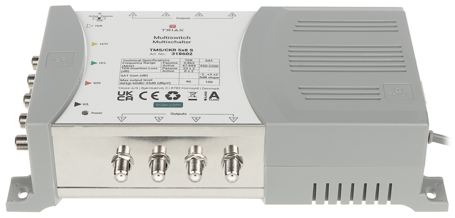 Return loss: | TV input : > 10 dB SAT input : > 10 dB Outputs : > 10 dB |