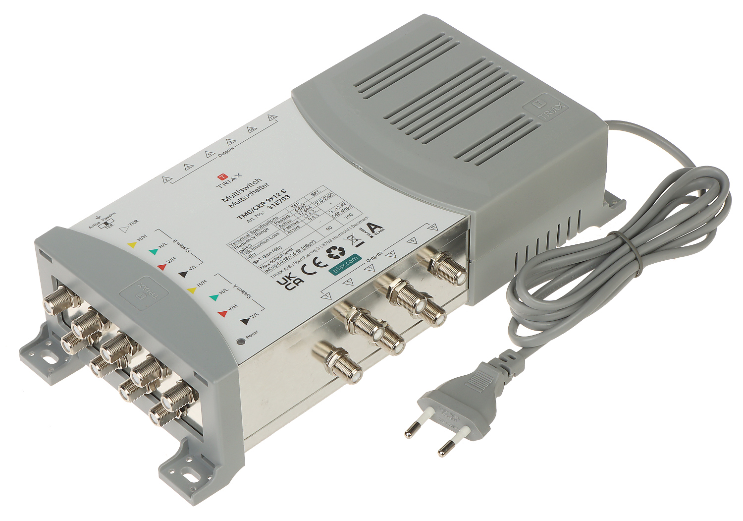 | Return loss: | TV input : > 10 dB SAT input : > 10 dB Outputs : > 10 dB |
