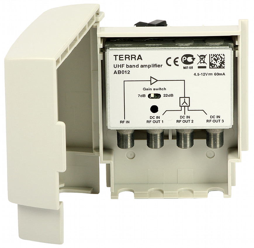 Frequency range: 470 MHz ... 862 MHz ; Gain : 7 dB / 22 dB (switch) ;